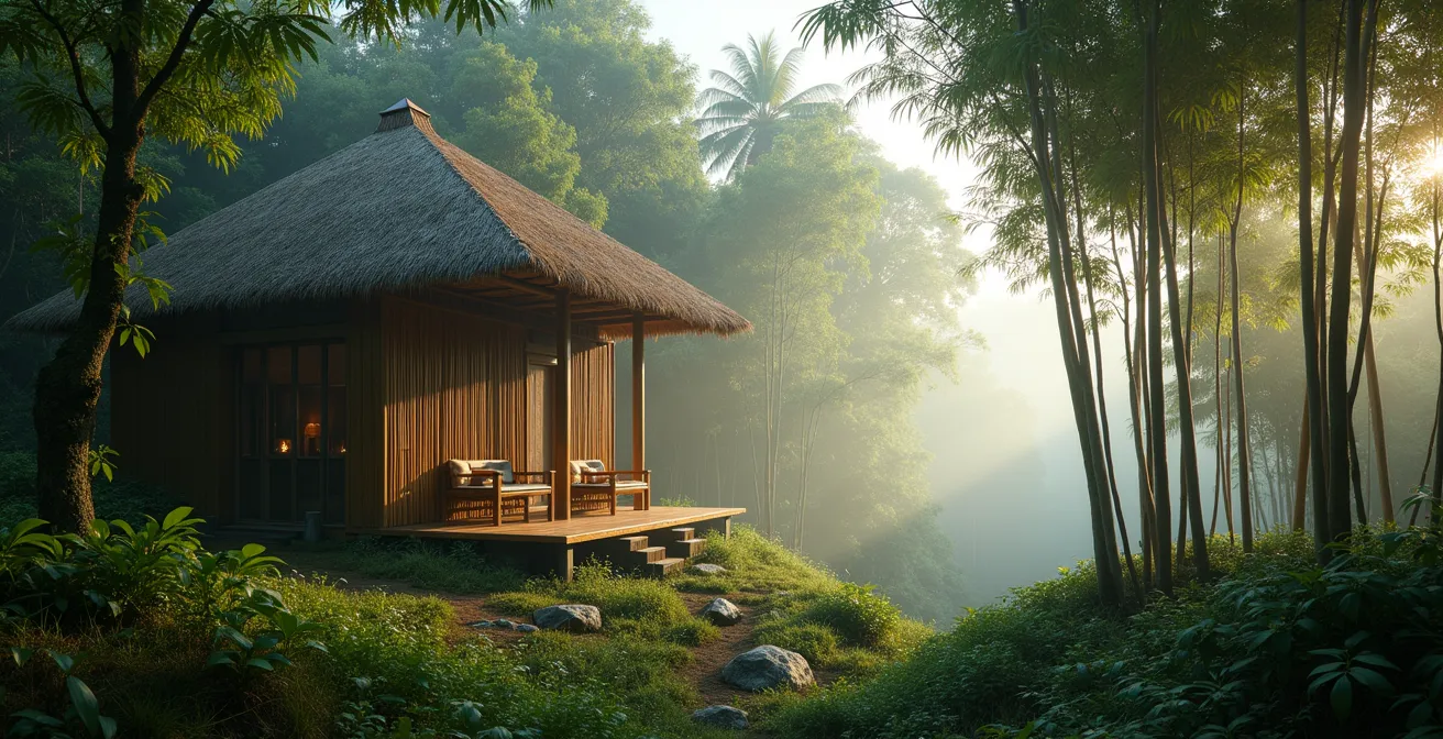 Vous êtes blotti dans votre lit, au cœur d’une structure en bambou. Soudain, un craquement sec résonne dans le silence de la nuit, puis un autre. Loin d’être le signe d’une construction fragile, ce son est la preuve que vous dormez à l’intérieur d’une architecture vivante. Le bambou est un matériau hygroscopique, ce qui signifie qu’il absorbe et relâche l’humidité de l’air en fonction des variations de température et d’hygrométrie. Les craquements que vous entendez sont simplement les fibres du bambou qui se contractent ou se dilatent. C’est la respiration du bâtiment, le témoignage de son dialogue permanent avec le climat local. Choisir le bambou, c’est accepter cette nature dynamique et refuser les matériaux inertes et industriels.