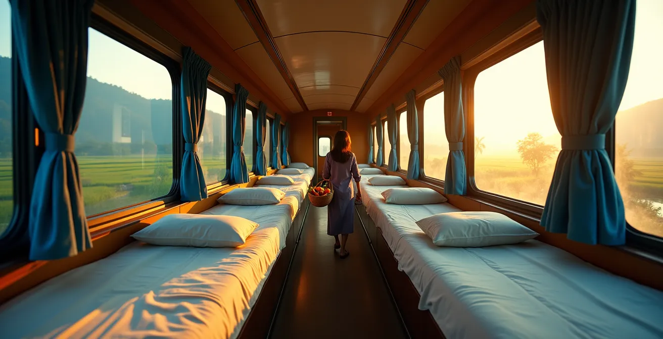 - La fenêtre contemplative : C’est l’atout majeur. La couchette du bas dispose d’une grande fenêtre privative. C’est votre écran de cinéma personnel sur la Thaïlande qui défile. Vous pouvez observer le soleil se lever sur les rizières, les enfants saluer le train depuis leur village, la vie locale s’éveiller. C’est le cœur de l’expérience « slow travel ».